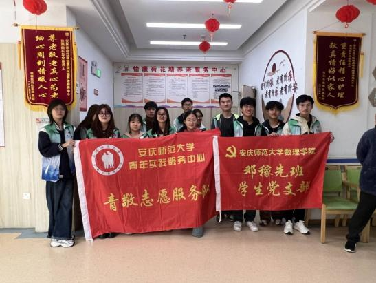 为进一步增强党员的服务意识,促进党群关系和谐,提升党支部的凝聚力和战斗力,3月23日上午邓稼先班学生党支部与学校青敬志愿服务队携手,共同前往安庆市大观区怡康养老服务中心,开展“青春暖夕阳”志愿活动。