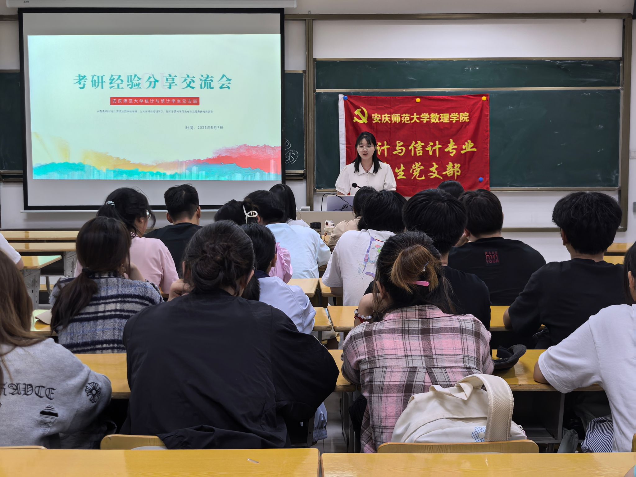 2025年5月7日,必赢线路检测3003no1统计与信计专业学生党支部在必赢线路检测3003no1501教室成功举办“逐梦研途,薪火相传”考研经验交流分享会。活动吸引了应用统计学、信息与计算科学(中外合作)专业多名学生参与,现场座无虚席,气氛热烈。