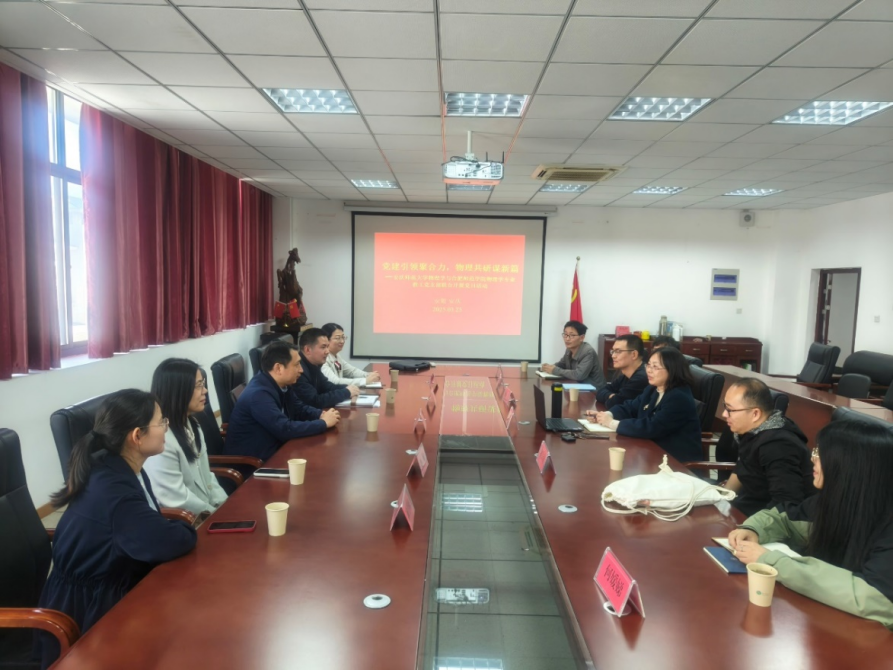 3月25日上午,合肥师范学院物理与材料工程学院副院长余龙宝、物理系主任沈永才等一行5位党员同志来必赢线路检测3003no1开展主题党日活动,双方围绕“党建引领聚合力,物理共研谋新篇”开展交流。必赢线路检测3003no1副院长易明芳、物理系系主任吴彦斌、大学物理党支部副书记何嫒娣、学科物理硕士点点长张平伟、实验实训中心主任白金等参加活动,活动由易明芳主持。