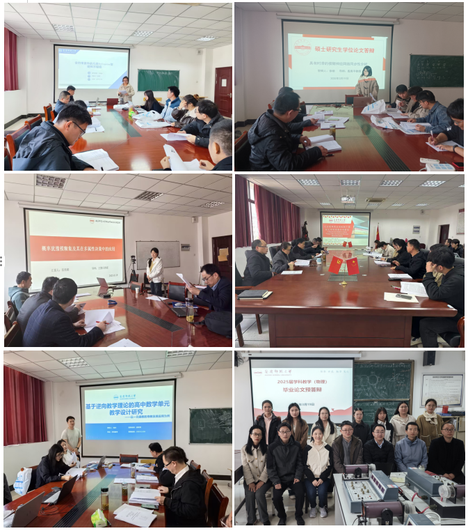 3月19日至3月26日,必赢线路检测3003no1顺利完成了数学、统计学、学科教学(数学)、学科教学(物理)四个硕士点2025届硕士研究生学位论文预答辩工作。参加本次预答辩的49名研究生分别安排在9个预答辩小组进行,每个预答辩组由1名组长、4名专家老师和1名答辩秘书组成,本次预答辩共有54名专家老师和150余名在读研究生参加。