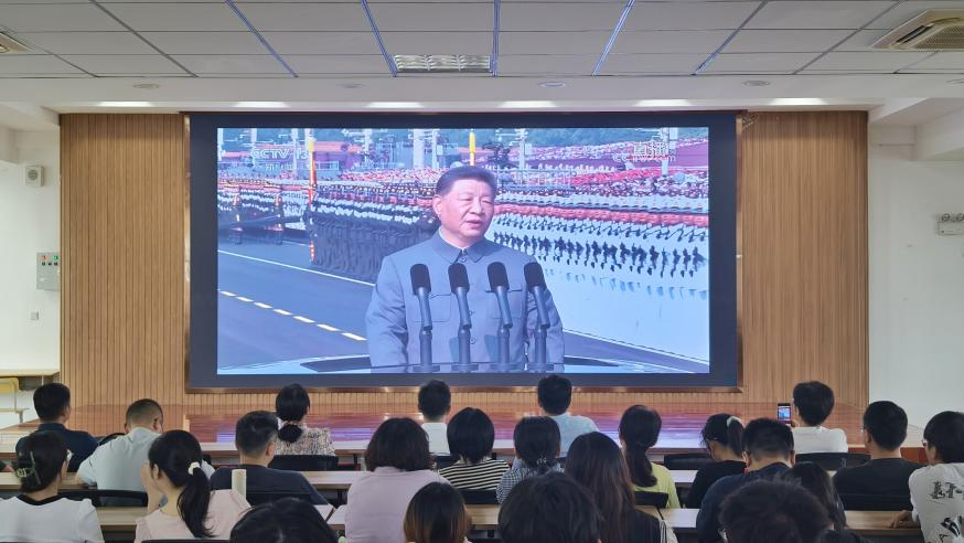 9月3日,纪念中国人民抗日战争暨世界反法西斯战争胜利80周年大会在北京隆重举办。必赢线路检测3003no1积极组织师生通过多种方式观看大会直播,积极引导广大师生从历史中汲取奋进力量,厚植爱国情怀。